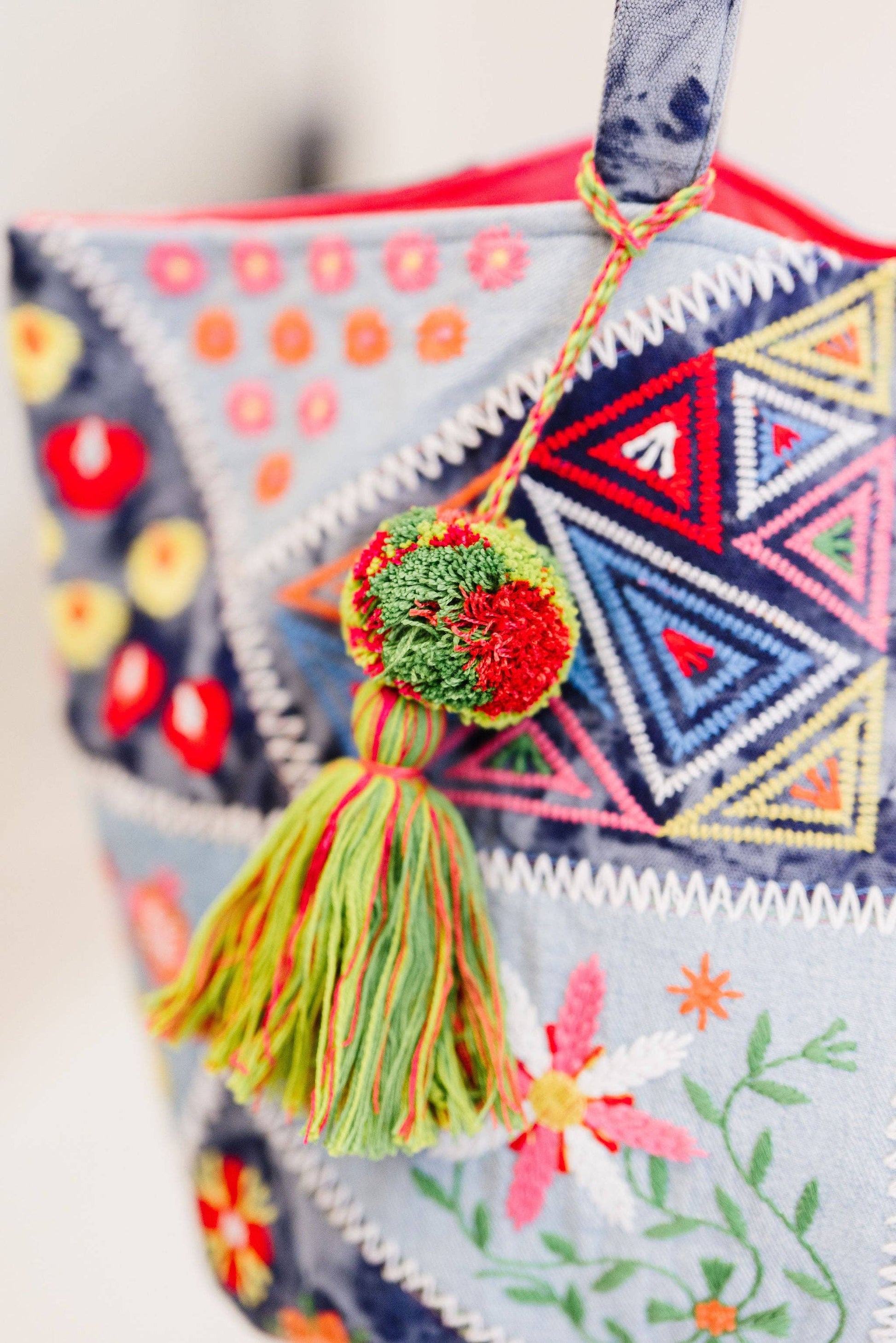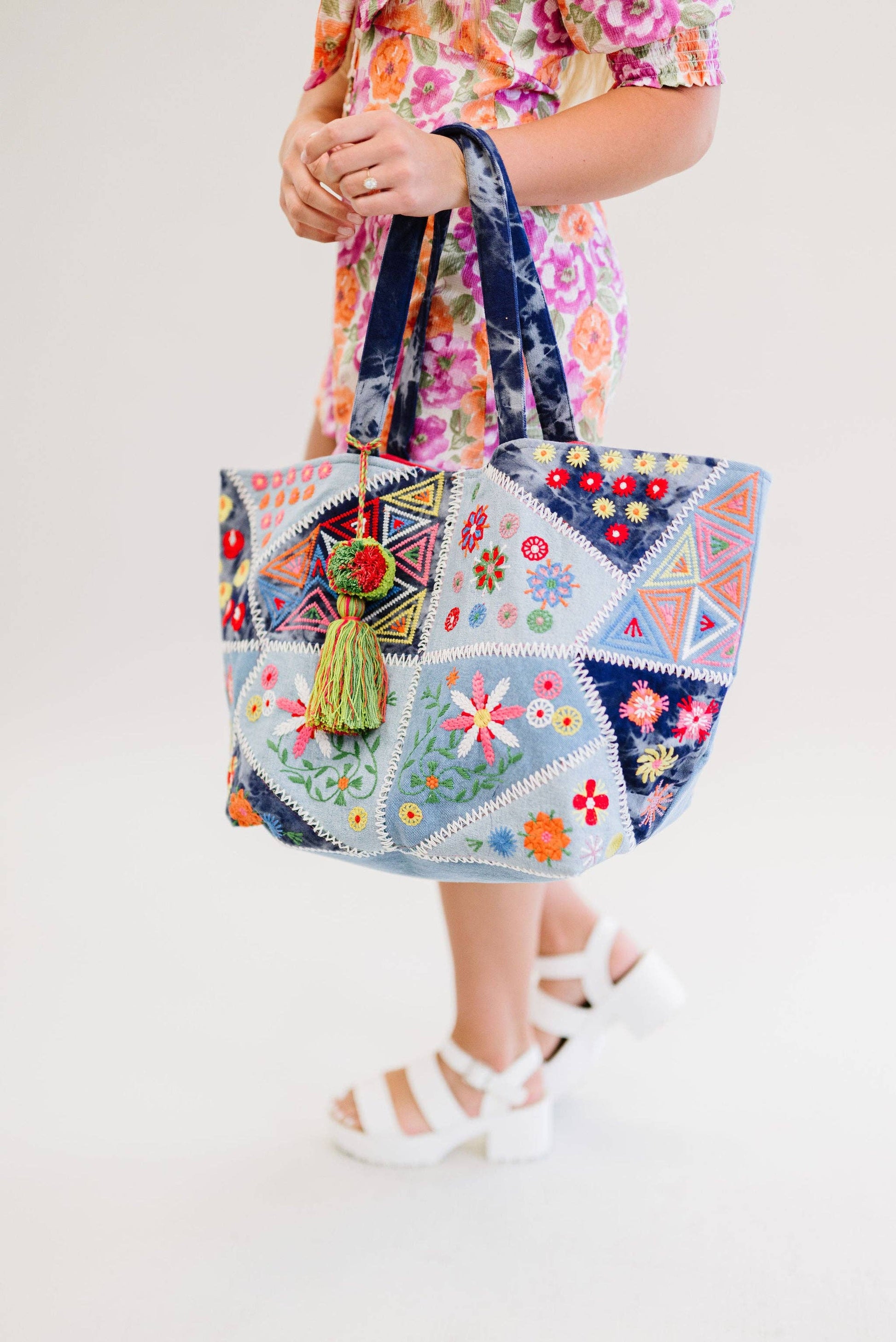 This one goes out to all our boho babes! The Arden is a colorful oversized tote that's sure to brighten up your day. This handmade piece features so many unique details, from the patchwork and tie-dye denim design to the bright fuchsia interior (no more digging in the endless abyss to find your keys). The Arden pairs well with all of your favorite summer activities: farmer's markets, getaways, beach time, and more!