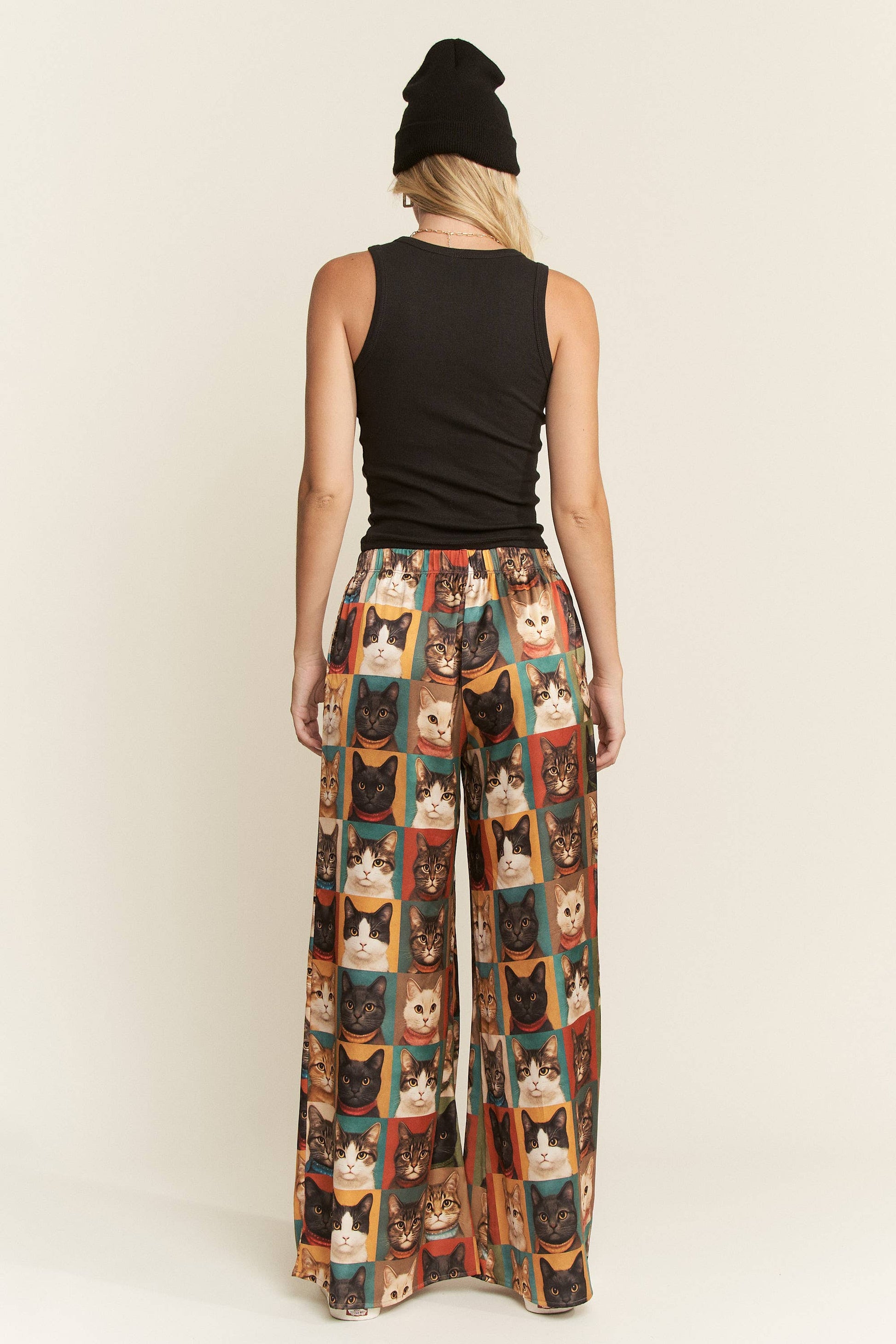CAT PORTRAIT WIDE LEG PANTS - Elastic waistband - Wide leg - Full length - Pockets - Soft, satin-silky material