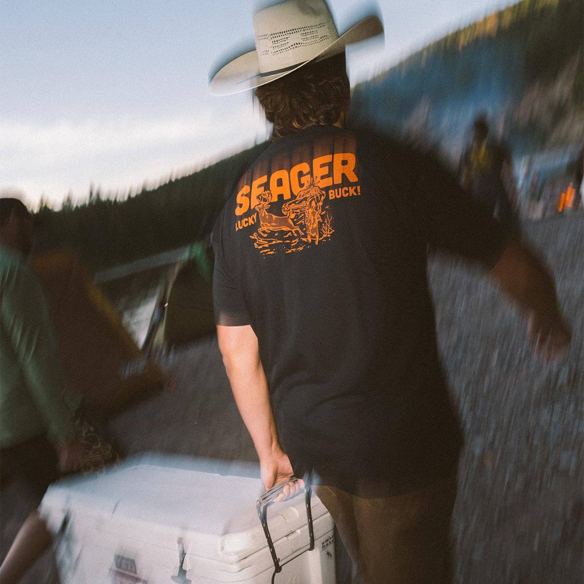The Lucky Buck Tee is a 100% cotton, medium-weight tee with a back print made to carry a little luck with you wherever you go.