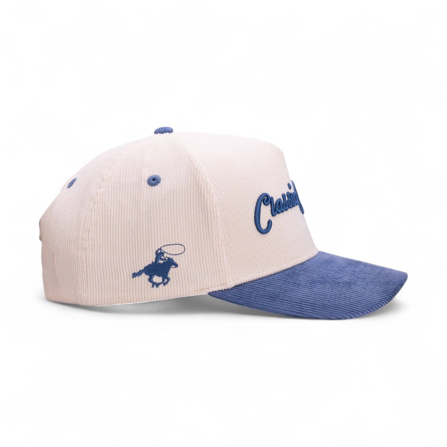 A timeless take on Western style, The Ol’s Blue blends vintage charm with modern flair. This corduroy baseball cap features a crisp cream crown with deep blue embroidery showcasing the signature Classic Cowboy script. The bill is crafted in a rich blue corduroy, adding a bold contrast that nods to classic Americana. Subtle rope-rider graphics on the side panels complete the authentic cowboy-inspired look. Soft, durable, and built for everyday wear, The Ol’s Blue is your go-to for a laid-back yet distinctive finish.