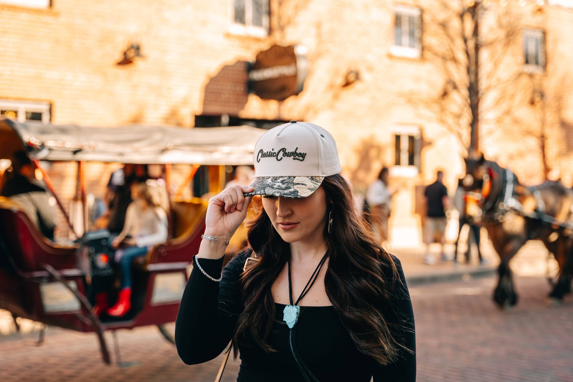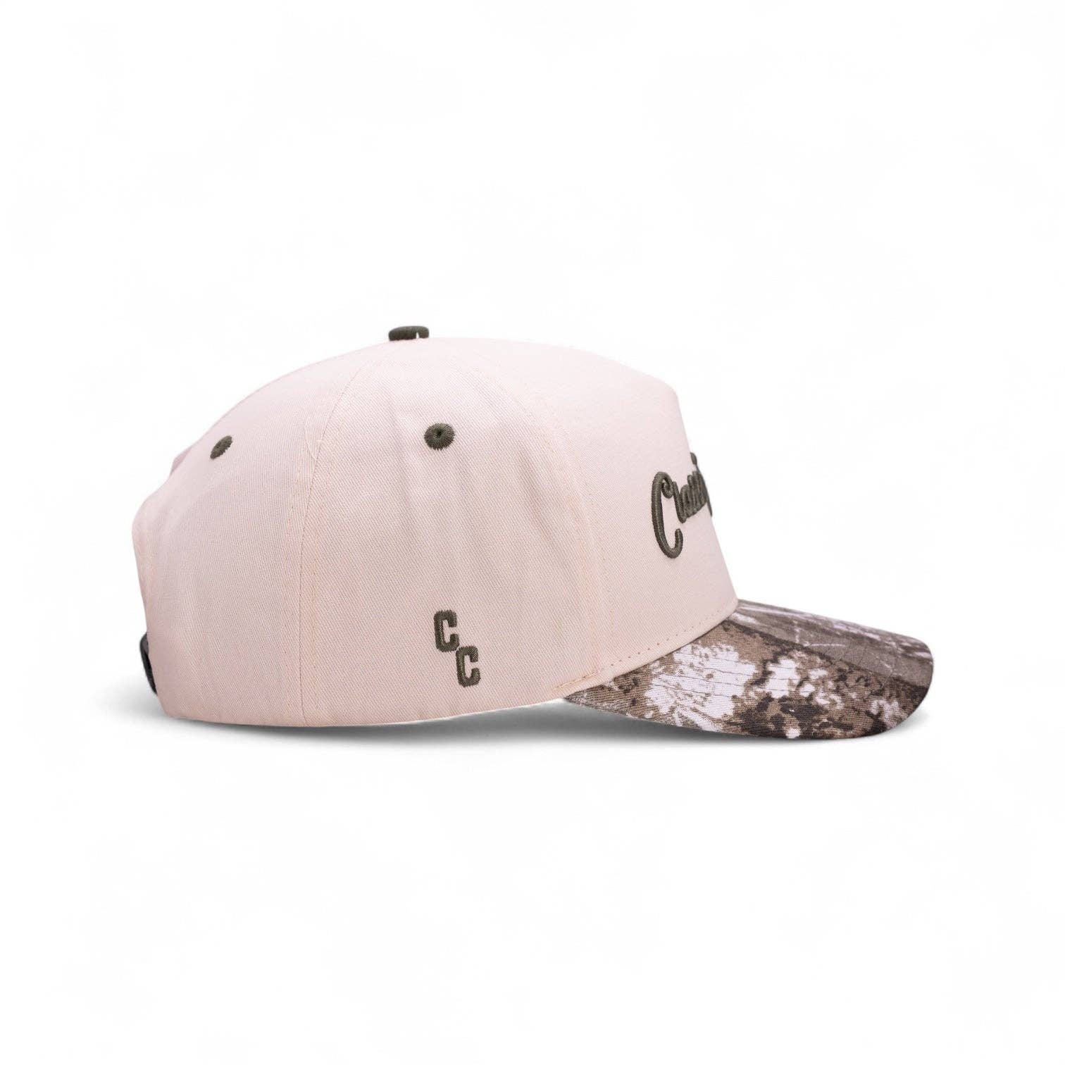 The Rancher consists of our real tree bill with an off-white cap with forest green accents. One size fits all.